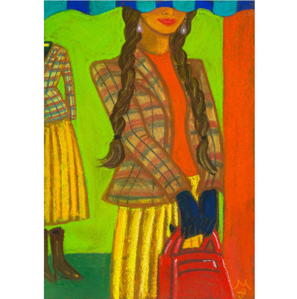 ファーラの作品は、日常のなかでふと目にした光景や、記憶のなかに沈殿する感覚の断片を出発点に、再構築されたフィクショナルな情景です。通りを歩く女性、窓辺の庭、鏡台に無造作に置かれた化粧品といった一見取るに足らない主題は、彼女の筆により異化され、絵画的空間のなかで静かに輝きを放ちます。それらの場面は具体性を保ちつつも、構図の大胆なトリミングや、描かれない余白によって詩的な曖昧さを帯び、観る者の知覚に揺らぎと広がりをもたらします。