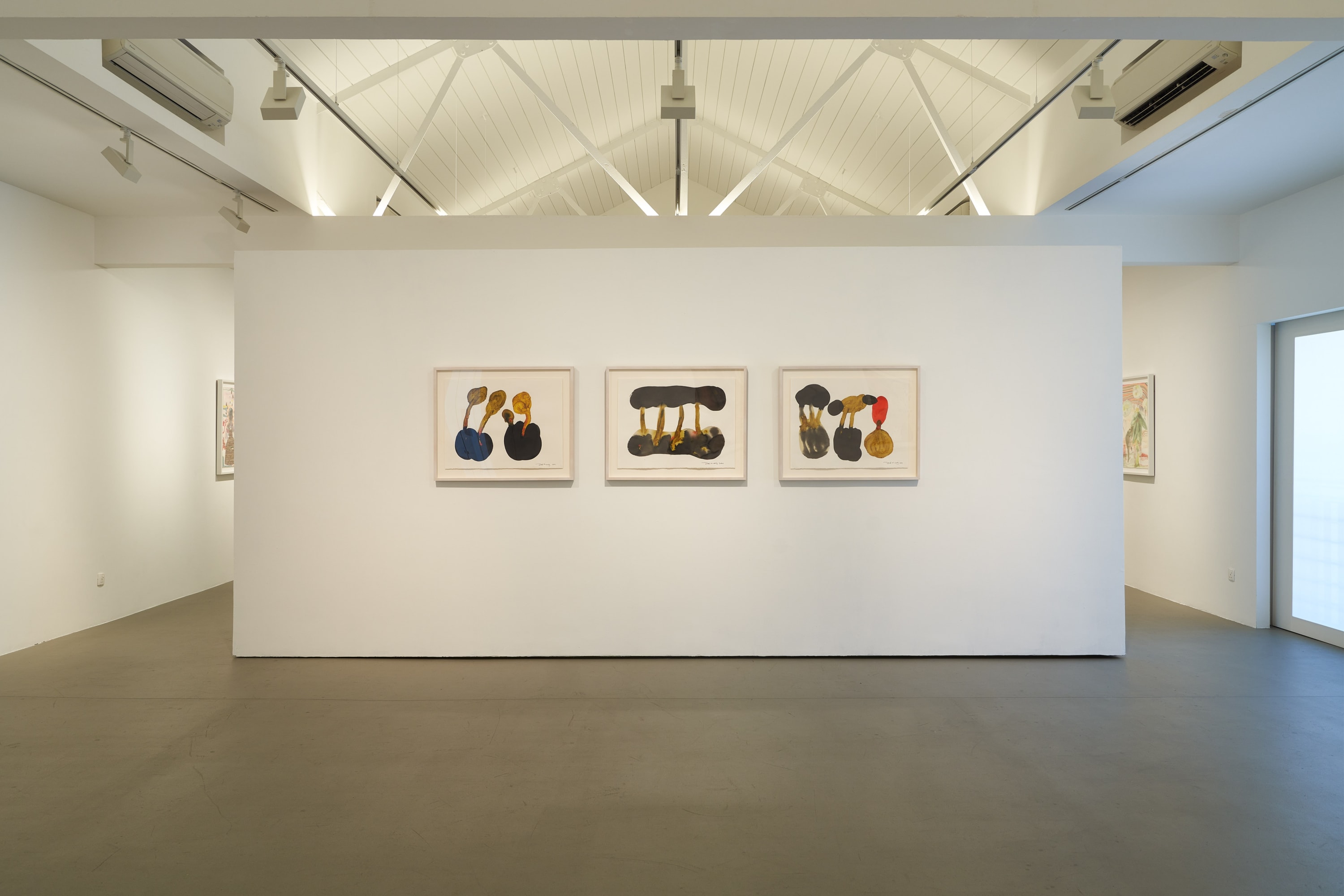 Installation view of "Rina Banerjee and Zai Kuning: Dialogue", 2021, Ota Fine Arts Singapore Ota Fine Arts Singapore is delighted to present “Dialogue”, a duo exhibition by Rina Banerjee and Zai Kuning. This exhibition features recent works on paper by the two artists, which are characterized by their usage of bold colors and multi-layered compositions. While Banerjee‘s works depict mythical-looking figures painted in acrylic and incorporating collage elements, the new series of works on paper by Zai present abstract forms drawn in ink, watercolour and organic pigments. Through this exhibition, we hope to create a lively dialogue between the works of these two artists, which resonate strongly in the time that we live in.